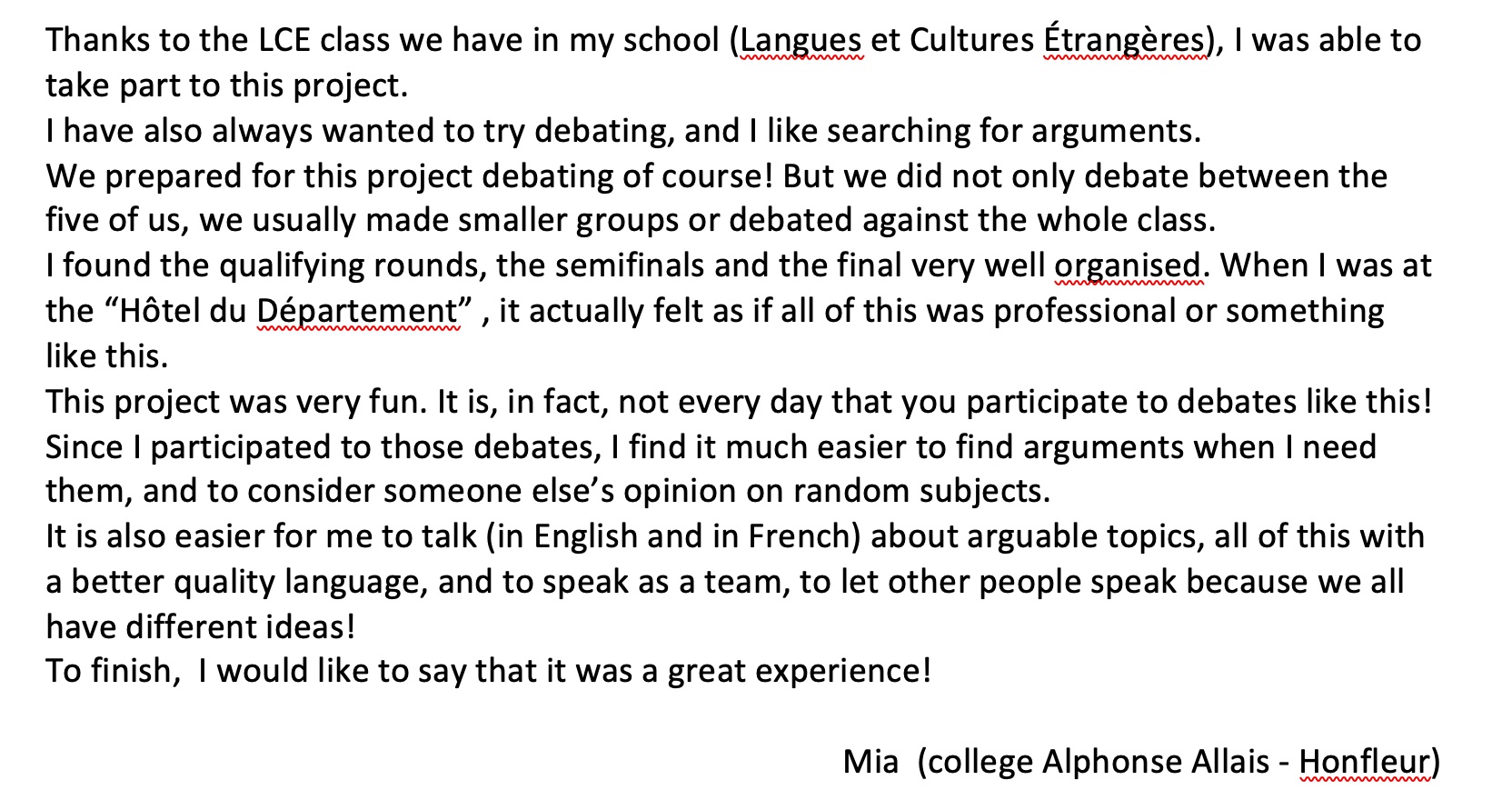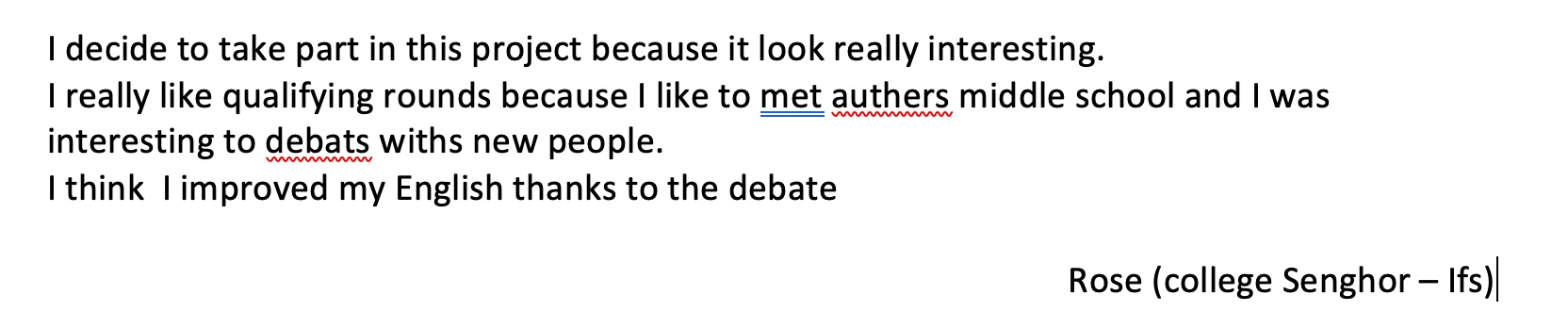 Selon les enseignants présents, « le bilan est très positif pour les élèves qui étaient ravis de rencontrer d’autres personnes, de mettre en pratique leurs compétences à la fois linguistiques, argumentatives et sociales dans un contexte attractif, concret et plein de sens et de sentir les palpitations de la compétition en équipes ».
