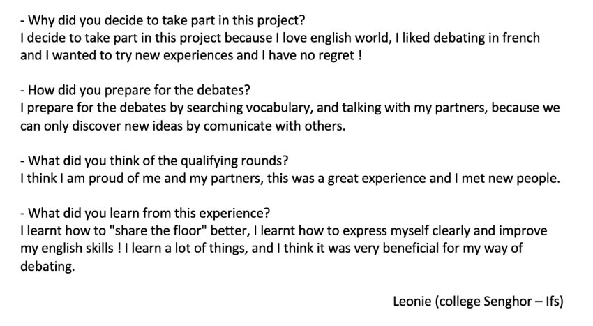 Le concours de débats citoyens en anglais a été étendu pour la première fois cette année à l’ensemble des collèges de l’académie.