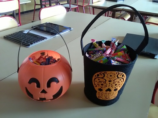 En entrant dans la classe, j’ai été directement plongée dans l’ambiance du jeu. En effet, Mme Haquet avait soigné les détails : une décoration de classe et de nombreux accessoires qui permettaient de comprendre le thème abordé : Halloween.