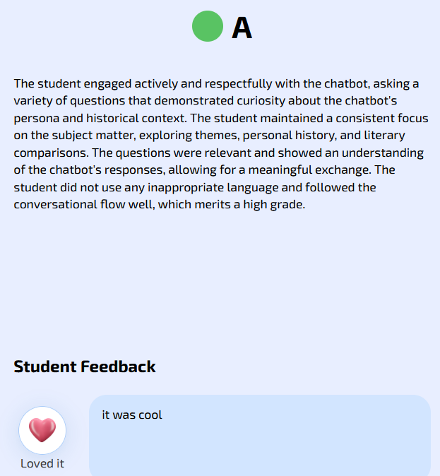Si c’était à refaire, je limiterais un peu plus la longueur des réponses du chatbot qui par défaut sont assez longues. Il ne faut pas que l’activité dure trop longtemps. Cela peut donner l’impression de tourner en rond si l’élève n’a pas une question précise pour faire avancer la conversation. Pour le travail sur Emily Brontë, une vérification des notes des élèves en les comparant à une biographie de source sûre aurait pu être intéressante afin de développer l’esprit critique.