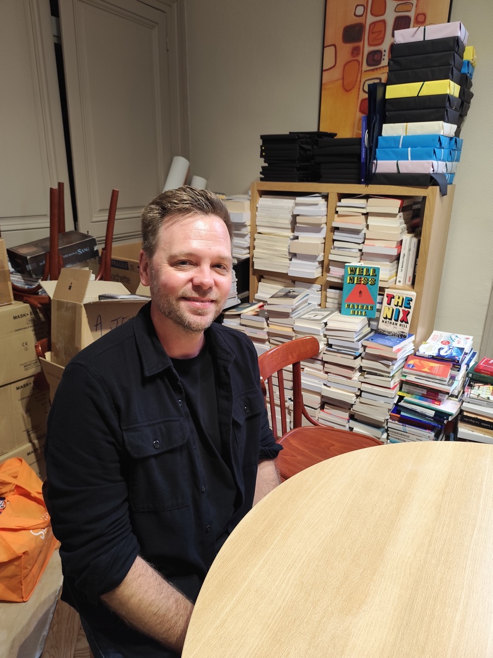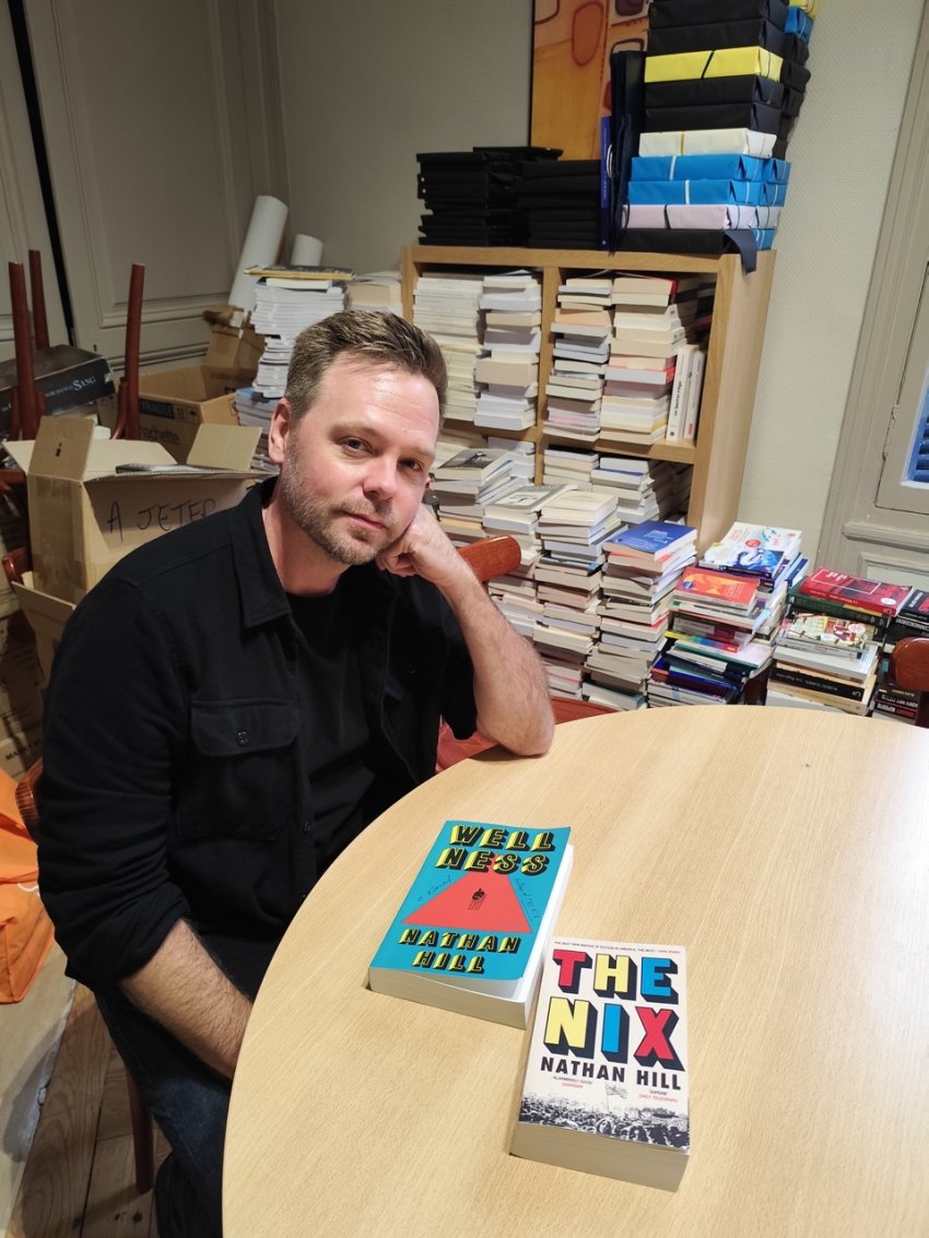 Nathan Hill est un écrivain américain originaire de Cedar Rapids dans l’Iowa, où il est né en 1975. Il a publié deux romans, The Nix, en 2016, et Wellness, en 2023. Il est venu présenter son roman lors de sa parution française à la librairie l’Armitière, à Rouen.